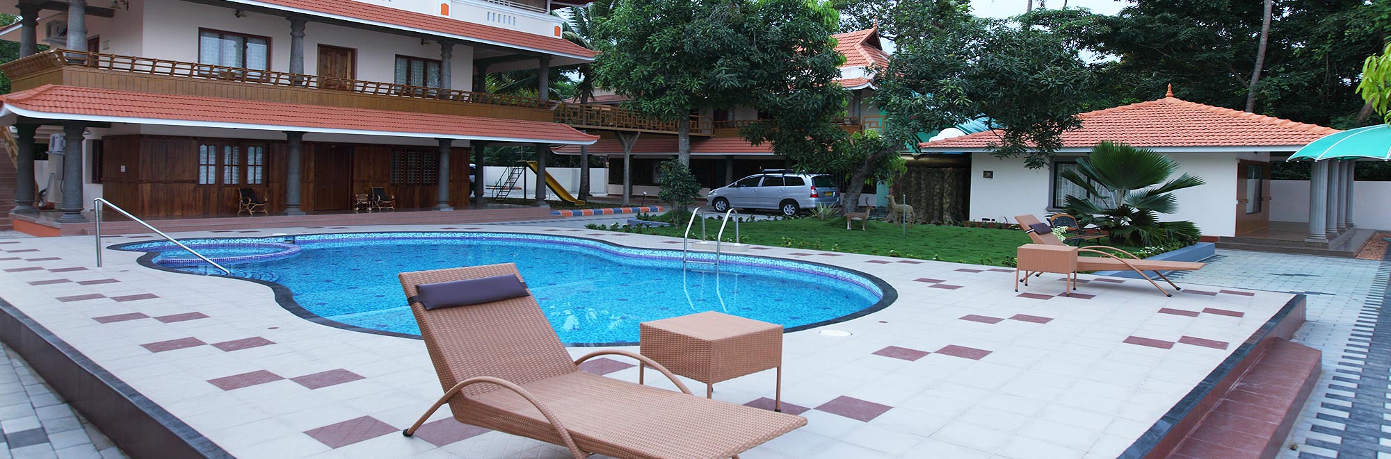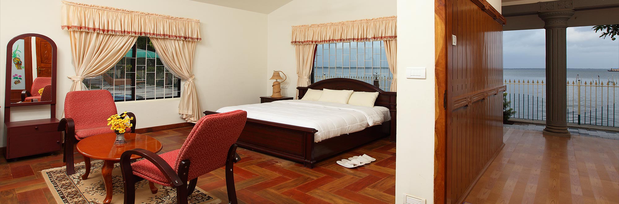 On the shores of enticing Kumarakom backwaters, Shimpos Lake Bounty Resorts offers distinctively different cottages of above 600 sq ft. Mud plastered and eco friendly, each cottage consists of a bed room, bath room, and sit out, Highly hygienic bathroom is equipped with well maintained and absorbingly designed accessories, which are a class apart. Aesthetically designed and spaced bed room is well appointed and decorated with pleasing natural elements..
