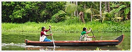 Kumarakom, the famous backwater tourist destination in Kerala is located about 12 kms from Kottayam. This place can be reached through a voyage from Alappuzha. Kumarakom is undoubtedly the most invigorating, fascinating paradise in Kerala, God's own country. This rich green, sleepy little village of Kumarkom is located on the Vembanad lake amidst mangrove forests and coconut groves. Kumarakom is an enchanting picnic spot and provides boating, fishing and sightseeing experiences that are truly exhilarating. The slender coconut palms standing here, there and everywhere, its never ending paddy fields, meandering lagoons and backwaters, mangroves nesting birds of a hundred varieties can peacefully calm and invigorate your mind. On the scenic Vembanad lake you will come across plenty of traditional country crafts or houseboats, boats and canoes. The fresh water of the lake runs into the mainland making a labyrinth of lagoons, brooks, canals and waterways. The backwater houses a variety of species of both fauna and flora and marine life.